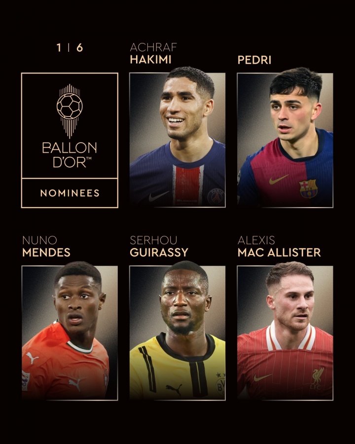 24 Live Network 8月7日新聞金球獎?wù)叫剂?025年男子金球獎的30人入圍名單。登貝勒(Dembele)帶領(lǐng)巴黎的9名球員入圍,雅馬爾(Yamal),拉菲尼亞(Rafinia)和姆巴佩(Mbappe)被列出。